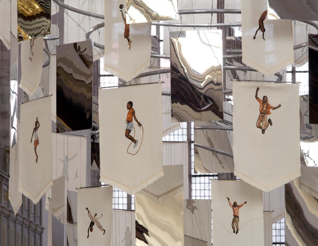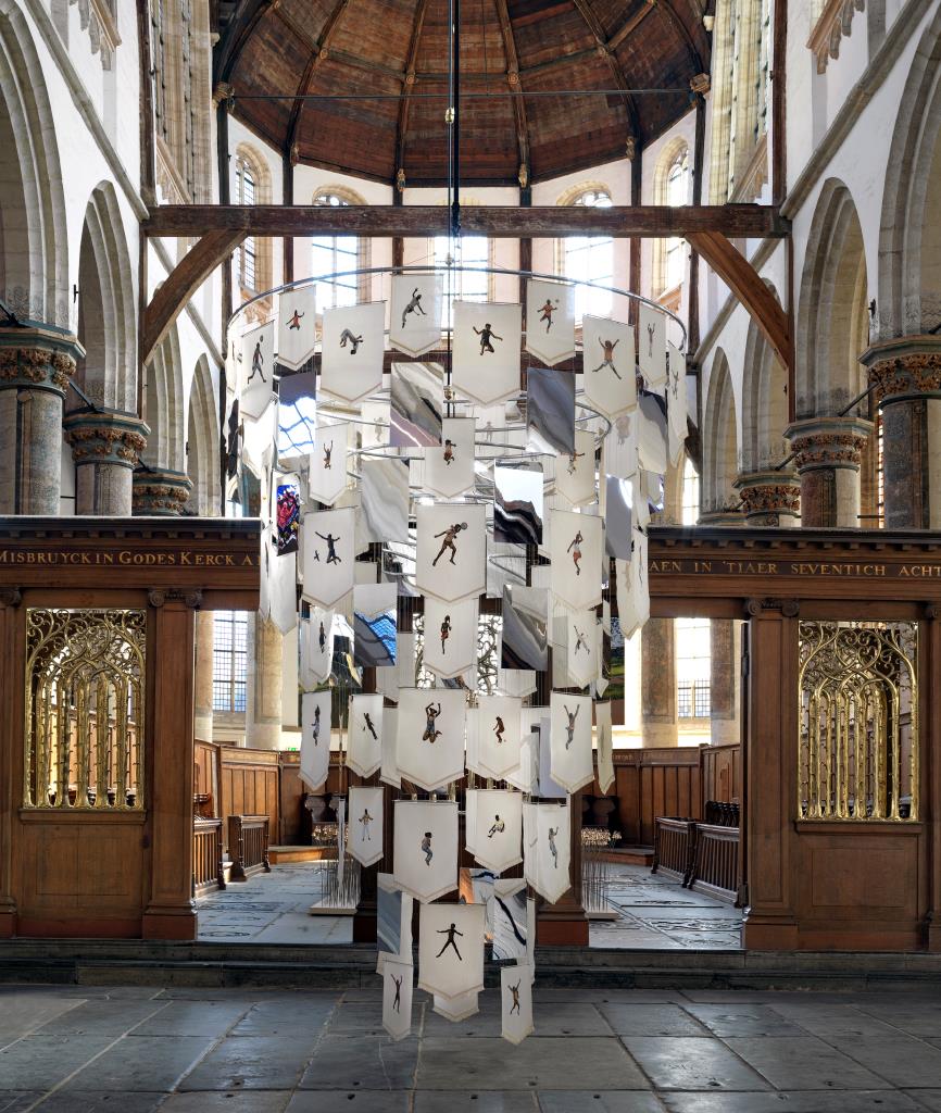 Voor het Hoogkoor, in het midden van de kerk, hing het werk Suspended Children. Een spiraalvormig werk dat bestond uit spiegelende panelen en met de hand beschilderde vaandels met spelende kinderen. De spiegels vermenigvuldigden de vaandels en speelden zo met de ruimtelijke waarneming. Zonder context leken de figuren te zweven. De spiegels refereerden aan een oude West-Afrikaanse religieuze traditie om spiegels en flessen aan bomen te hangen. Een traditie die zich na de Trans-Atlantische slavenhandel voortzette in Amerika.